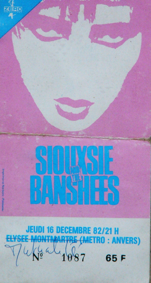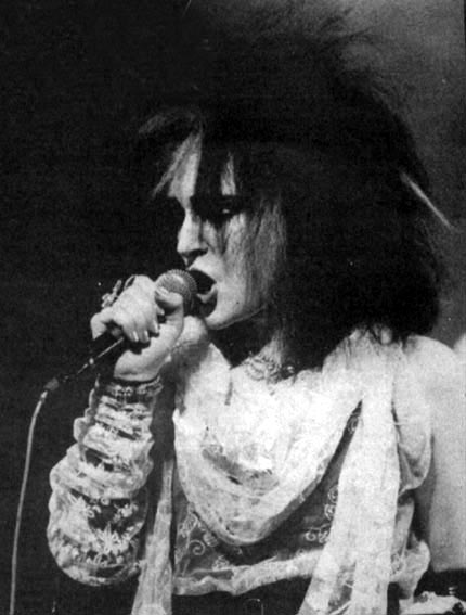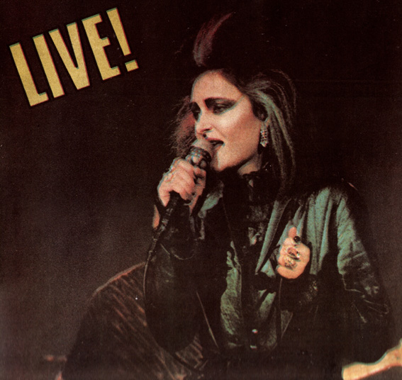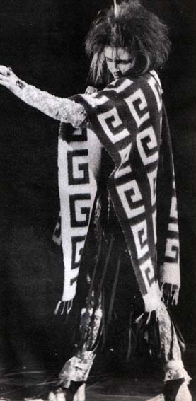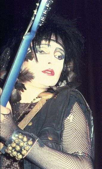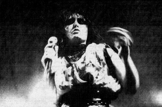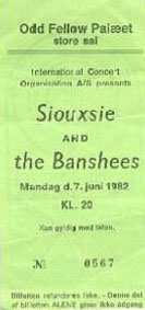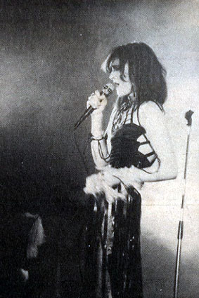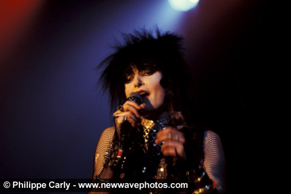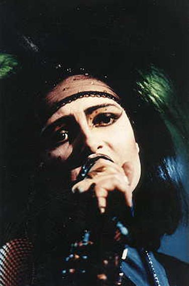 Well, what a strange old thing this Siouxsie business is; another year on and another night of 'ritual'. Wasn't put in the best of moods by the support duo who gave a new meaning to the word 'infinity'. The vocalist was interesting though, warbling away with a 'fishbone legacy' and sounding like a young Joe Cocker - and bits were nice in an 'epic' sorta way. Now we have a problem with Sioux. With McGeoch in hospital suffering from strain and exhaustion, Robert Smith was back depping on axe duties and good though he is, it could never match up to the original combination. The band were valiant to even attempt a show tonight - but the cracks gapped desperately wide open. So let's turn for a minute to the audience, because the main feature of the gig was its atmosphere. It was poisonous and claustrophobic. The renegades form a dozen youth cultures paraded their colours - so skin stared at shockabilly stared at hippy - an the dance went round again, seething. The hardcore fanatics leapt in the spots and greeted familiar intros with a burst of applause but after each number the response was anything but enthusiastic. As the band played, a good many people lay on the floor in apparent comas. People sat on the staircase reading programmes even as the music reached its peaks! Rarely at a rock gig have I witnessed such extremes of audience passivity and aggression walking hand in hand. And from the centre of the hardcore, a loud voice screamed "bloody appalling" at the conclusion of various songs - and no one tried to shut him up. Unfair. Embarrassing. Siouxsie swooped out of the spots, her voice sounding perilously weak at times and too often, she sang half a tone flat. The reason was simple; the flanging on both guitar and bass was so extreme, there were no root notes for her to pitch off. Poor Sioux. Poor Severin and Smith with their axes sounding like out of control police sirens! Budgie had a monitor problem(?) as well. So a fair number of beats were out-of-sync afterthoughts, but at least he made his mistakes spectacularly! Even 'Happy House' degenerated in a most peculiar way, turning inside out timewise and ending up feeling very sorry for itself by the time the last few bars rang out. Getting technical again, the PA was a botched rig, the speakers throwing the sound away in different directions like handfuls of confetti. The set had more 'Juju' than 'Dreamhouse', obviously for Smith's benefit, and it verged from plodding to showing the old brilliance stabbing back through this murk. Siouxsie has a new fragility in her voice these days - at times, hints of Marianne Faithful could be glimpsed - and that's most attractive. The new album shows what can be done, but something laid down and died tonight so I left, with feedback still howling around the auditorium even after nine numbers. A brave show but some nights even sheer magic isn't quite enough. Valac Van Der Veene |