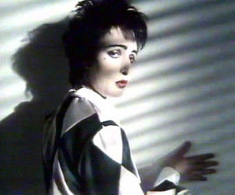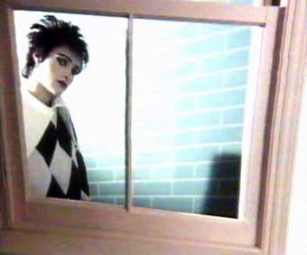 | The band: Siouxsie Sioux, Steven Severin, Budgie. Budgie's first video with the band. Although John McGeoch plays on this track, contractually he was not permitted to appear in the video. The band perform in the confines of a crooked house especially constructed for the video. It's pretty much a straight forward band performance. Siouxsie appears in her famous 'harlequin' outfit, there are shots of Siouxsie looking in through the window, Siouxsie reflected in a distorted mirror and cut away shots of both Siouxsie and Budgie playing miniature instruments. Towards the end of the video the three band members link arms, Siouxsie swinging an umbrella, whilst streamers 'rain' down on them. | ||