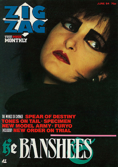 SOMBRERO BOLEROBANSHEES’ SIBERIAN NIGHTS AND BYGONE DAYS IN BILBAO, industrial heart of Spain’s Basque region, there’s a basketball stadium waiting for Siouxsie And The Banshees. The lights are up over the cavernous hall, the stage is set. Outside, the crowds are gathering, and the riot police that line the square look uneasy, flipping visors backwards and forwards over twitching faces, slapping wooden truncheons into gloved hands. Last week a band turned up an hour late and the crowd rampaged. The police flex stiff muscles and grit their teeth, ready for any repeat. Meanwhile, Budgie is being raced back to the hotel and the soundcheck has been cancelled so the show can start on time. The Banshees’ Franco/Iberian tour is scraping into motion. The special effects machine broke down last night. "Hi-tech, who needs it?" asks Budgie, "back to skiffle I say, give me me wash board I’ll be alright." It’s at this point that I have my first meeting with the face of Sioux. This time it’s in multiple, spread three high over 20 feet of wall - the familiar spray of hair, the hint of a smile at the corners of the mouth. "Hmmm, red and black," comments Budgie, as Sioux’s face flicks past the car window, "that’s better - in Madrid it was pink with two noses." Eh? "The printing had gone out of synch, she was left with two noses." One way, I suppose, to make the face of Sioux shock once more. PERHAPS THE Arabs had a point after all with that quaint little belief that every time a photographer snaps, he captures a piece of the subjects soul on film, until eventually only the pictures remain. Or perhaps it’s just that every picture capable of not just telling but creating a story hides a nascent cliché. Just look at the casualties: like John Lydon holed up in LA with a musical career that he’s turned into a bad joke, and an acting career that was one from the start, unable to recapture that moment when the world fist looked in his direction. Taking on the world is one thing, doing battle with your own myth is an altogether tougher prospect. And our current contenders, Siouxsie And The Banshees - they looked defeated to me, but they say they’re rallying for another assault. Good luck. Until last year the Banshees seemed the most capable of setting the images dancing to the tune they called. With ’Hyaena’, it finally seemed as if the ghosts of Banshees past were closing in. All those pictures, all the young Siouxs that crept off the printed page and into the corners of provincial discos from whence they’d be called by the first chords of ’Spellbound’. From the Ice Queen to Findus mass-production, it added up to one thing for the Banshees - you couldn’t tell the spectre from the spectacle. ’Belladonna’ - wasn’t that by Bauhaus, or was it the Sex Gang Children, The Sisters Of Mercy perhaps? The Banshees? Aw c’mon. I see the face of Sioux close up, and it’s a face I’ve seen everywhere. She hurries into the waiting car with a flash of lace from beneath a black coat ... "Following the footsteps of a rag doll dance, we are entranced..." ARE WE? yet still? Now that the footsteps of the dance are neatly laid out in black vinyl, perhaps it is time to look back. Just what was it about the Banshees anyway? LIMBERING UP ROXY MUSIC, T. REX (Can and Captain Beefheart). Weren’t you a go-go dancer with The Sex Pistols, Siouxsie? "God no! A friend and I once got drunk at the Screen On The Green and danced on our seats, but go-go dancer? Never!" STEP ONE: "be limblessly in love." Singles: Hong Kong Garden (+++++) The Staircase (Mystery) (+++) LP: The Scream (+++++) WAY BACK when, Siouxsie And The Banshees were wearing black and turning the lights up bright white. That image might have lost the unique focus it had then, but the music of ‘The Scream’ and ‘Hong Kong Garden’ still prickles like electric acupuncture. It’s surprising how close to the bone it still penetrates. After Patti Smith’s ‘Horses’, ‘The Scream’ is the best debut LP of all time. Was it 1978 or ten years on? From the underwater claustrophobia of its cover, through the fractured monochrome scenarios to the morbid fascination of ‘Switch’s’ final flickers, its poetry in sound and splinters. From Bauhaus to the Sex Gang Children, all the dark dunces that were to paddle in its wake never understood the economy of its terror. Where a Bauhaus song is a compost heap of nastiness, ‘Hong Kong Garden’ is a gaudy rush of elation, through which the ugly reality of junk deals and nascent fascism are partially glimpsed - ‘Metal Postcard’ and ‘Switch’ hint at a horror but never pin it down, let alone heap it on the entire contents of the dictionary of darkness. Oh, and fascism of course - because the Banshees strolled through a moral twilight, there were always those ready to brand them. Julie Birchill, reviewing ’The Scream’, concentrated on the (admittedly) rather stupid line in ‘Love In A Void’, "too many Jews for my liking", despite the fact that this did not appear on the LP. What did appear on ’Metal Postcard’ was a dedication to John Heartfield, Munich born founder of the Berlin Dadaists, whose grim and violent blood-and-iron collages (similar in their imagery to the Banshees’ own) were so acceptable to the Nazi party that he had to flee the country. In exile in Britain he was threatened with extradition, which shows that even then we were pretty bad at Spot The Fascist. ‘Carcass’ from ’The Scream’ is immensely funny, but then I’m the man Neil Spence describes it as "sick". ("You’re sick" - Ed.) THE SHOW in Bilbao is uninspired, mainly because the Basque hardnuts in the audience were, pre-show, slugging the kamikaze local brandy. By halfway through the set the bottles are empty and look out, here they come... When an encore is refused, a deadly shower comes the way of an unfortunate roadie. He ducks - his skull survives and the snare drum behind him sustain