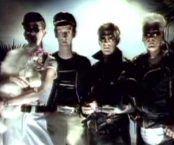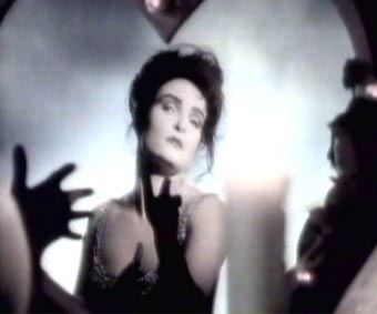 | The band: Siouxsie Sioux, Steven Severin, Budgie, Martin McCarrick, John Klein. An exploding champagne cork and a golden cherub set the scene. On a set comprised of palm trees and a heart shaped swimming pool (in reference to Jayne Mansfield, the subject of the song), Siouxsie unveils a radically new look, shoulder length wavy hair and a tight sparkling dress. A softer looking Siouxsie shimmies her way through the video, and at one point cavorts in her bathing suit in the 'heart shaped pool of fame' . The video is an interpretation of a glamourous Hollywood lifestyle and reflects Mansfield's love of pink and 'heart shaped' things.. The boys in the band line up moodily in the background taking it in turns to nurse a pet poodle (another reference to Jayne Mansfield). The Eastern flavoured music is complimented during the instrumental break with Siouxsie's exotic dance moves against a backdrop of Indian images. | ||