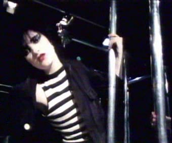 | The band: Siouxsie Sioux, Steven Severin, John McKay, Kenny Morris. Filmed at the ICA, London. A straight band performance filmed amongst a children's climbing frame complete with obligatory children! Siouxsie begins the song by sliding down one of the poles of the climbing frame. The children run around and play while the band perform. During the saxophone break the children are seen playing toy saxophones. Strangely, at one point a stationary bicycle is seen in the background. The video ends with a close up of Siouxsie's face as the children surround her and 'pull' her to her knees. | ||