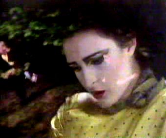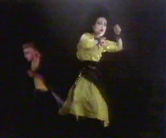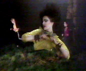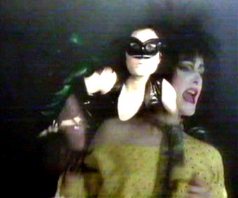 | The band: Siouxsie Sioux, Steven Severin, Budgie, John McGeoch. Filmed in Burnham Beeches, location for many of the exterior scenes on Hammer Horror. The video begins with a prowling cat superimposed over Siouxsie on all fours in the iconic leather mini skirt and thigh length boots, in front of burning stage curtains. Although the band are still playing their instruments, this is the first video where the band venture outside of a studio. The main action involves the band running and leaping through the woods. In a couple of shots Siouxsie wears a partial mask and the band are pursued by a 'demon' not unlike the one that can be found in the Japanese film 'Onibaba', one of Siouxsie's favourite films at the time of recording. Look out for McGeoch losing his footing in the chase. | ||