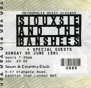 I've seen Siouxsie & The Banshees several times in the last week and a half and, at their heart, they've thrilled me every time. Tonight, though, the difference between greatness and mediocrity lies in the 25 yards that separate the bit by the speakers where they unscrew the top of your head and the deceptively daft fires that get people more interested in staving off hypothermia than celebrating one of pops great joys. Some of you letter writers are right. Yeah, we do forgive the bands and the people we like more than the dullards. The Banshees are friends, golly gee whizz, and there's a dynamism to what they do that that still manages to make it look sexy. But, if you're coming to them fresh, I can understand how they might not clutch you first time round. Trust me, trust those of us who've grown to find Siouxsie's presence in our world just about as important as breathing. New songs "Stargazer", "Hang Me High", "Not Forgotten" and the has-to-be-a-hit-single "Fall From Grace" have my neck hairs tingling even as I swipe a 10-tog thermal blanket from a spaghetti Bolognese of frankly unsavoury bodies. The crowd gets untangled and you get to see the point of festivals. Paul Mather |