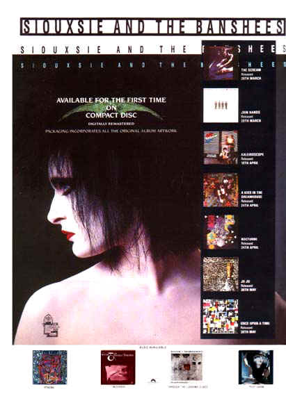 ![]() From ice maiden to carnival queen - Siouxsie And The Banshees on CD. At the dawn of punk, Siouxsie Sioux was chiefly renowned for her dismissal of Bill Grundy as "a dirty old man" and for a dress sense designed to provoke an outbreak of British sexual hypocrisy. The Banshees may have made their debut at the 100 Club Punk Festival in 1976 but their extended assault on The Lord's Prayer was as much a dare as a stab at launching a career. Siouxsie's original invention was herself and that unflinching stare remains one of the great icons of punk's disdain. These beginnings render it all the more surprising that, 11 albums on, the Banshees have long transcended the first flush of punk to create an unmatched legacy of dramatic and very British pop. Polydor's release of the first seven Banshees titles on CD means that all their output is now available on compact disc bar the two "holiday projects", The Creatures and The Glove. If Siouxsie's reputation remains that of the haughty Queen of Gothic Punk, these CDs suggest that, within the parameters of their brooding and fantastical world view, there is a good deal more to Siouxsie and her long-term partner Steve Severin than that enduring image suggests. Although Siouxsie and Severin's punk credentials are impeccable, the Banshees were the last of the original punk clan to release a record. By the time Hong Kong Garden entered the Top Ten in August 1978, the Banshees had already seen their fair share of touring and rapidly progressed beyond the confrontational three-chord thrash that had rendered punk a musical cliché. Spearheaded by John McKay's sheet-metal guitar, their debut LP The Scream virtually invented the Gothic rock genre overnight and stands alongside Magazine's Real Life as a turning point in punk's movement away from rabble-rousing and into the internal landscape of the psyche. While songs like Carcass are dated by their goose-stepping beat and stone-faced delivery, the gut-wrenching Overground and the dizzy Jigsaw Feeling demonstrate that already the Banshees were far more concerned with psychodramas of disgust than confronting society head on. The Scream was a new take on suburban angst as Siouxsie's howling vocals intimated that the boredom and alienation of suburban life amounted to nothing less than a horror show. On later albums, the Banshees would uncover a rich exoticism in suburban fears; on The Scream, Steve Lillywhite's thundering production ensures that they sound trapped. Restored on CD to all its forbidding austerity, The Scream is both a declaration of intent and something of an artistic full stop. The following year's Join Hands indicates that while only PiL could match the Banshees' chilling wail of noise, they'd left themselves little room to manoeuvre. McKay's guitar still seesaws disturbingly and Severin's ear for compelling bass riffs is apparent on Placebo Effect, but while Siouxsie turns domestic claustrophobia into Gothic nightmare on Premature Burial and Mother, her vocals are oddly unwieldy. While Hong Kong Garden had displayed an ability to combine a playful sense of unease with driving pop melody, on Join Hands there are only riffs. The departure of McKay and drummer Kenny Morris a mere four days after its release suggests that the Banshees' two halves had indeed reached an impasse. The next album Kaleidoscope featured the now long-serving Budgie on drums and guitar work from John McGeoch and Steve Jones. The Banshees' embattled state obliged Sioux and Severin to rediscover their pop flair and the album's tow singles, Happy House and Christine, display a renewed ability to surround Siouxsie's icy mixture of fatalism and sarcasm in the kind of melodies that even a punk's parents might hum. The inventiveness of a piece like Red Light, driven along by the clicks of a camera shutter, proved that the Banshees were considerably more than a one-trick pony. 1981's Juju finds McGeoch firmly ensconced on guitar, Sioux and Severin devoting themselves to an exhaustive exploration of the power of idols and the Banshees reborn as a magisterial hard rock band. On moody songs like Arabian Knights, Siouxsie unveils a new sensuality while the Banshees display the brooding authority of the Stones circa Paint It Black. Juju confirmed the Banshees' staying power even if their frequent assaults on the singles chart has never own them a mass following like that of The Cure. Most early Banshee albums have their indigestible moments and the argument that they are the best singles band gains some credence from the Once Upon A Time collection where early singles like The Staircase gain contrast from later stabs like the eerie Israel. A sequel is now surely due. A Kiss In The Dreamhouse (1982) found the Banshees further investigating the kind of offbeat textures that Brian Jones brought to the Stones in the mid-'60s. Songs like She's A Carnival and Cascade make gorgeous use of strings while Siouxsie's voice acquires a hidden warmth for studies in erotic extremity like Melt! and Obsession. Dreamhouse probably remains the Banshees' finest hour. In 1983, the Banshees marked time with the live Nocturne, a well-recorded resumé of the band's capacity for Sturm und Drang lightened by the occasional exchange with the audience ("What time tunnel did you crawl out of?" Siouxsie asks one particularly nostalgic punk fan). McGeoch had flown the nest immediately after the Dreamhouse and Nocturne misses his magisterial authority despite Robert Smith's capable but understandably muted understudying. Smith soon departed in turn and the Banshees spent the mid '80s trying to capture their old fire. The Banshee's origins and Siouxsie's forbidding stare have made it hard for them to escape their punk associations while their use of horror imagery has occasionally blinded fans to the questions of power and threatened innocence their unsettling narratives explore. These CDs lend their work a fresh clarity and trace a remarkable evolution which serve