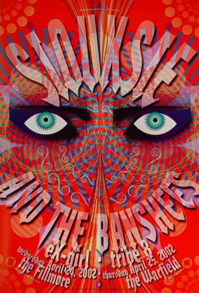 At the risk of giving in to silly clichés about a macabre madwoman, one can easily forgive such things as lousy acoustics after finally putting a voice to the face -- ruby red lips, kabuki pallor, blackened raccoon eyes -- that's become so iconic of a genre and generation. And now that the perpetually cranky Johnny Rotten has decided to roll out of bed for another vanity tour next month (to be shared with the likes of Blink-182 and the Offspring!), it's further proof that Siouxsie and the Banshees are the last great remnants of their time and place. To a crowd of dutifully shrouded dead men/women walking, Siouxsie used every trick in the showmanship book. Black-suited (later stripping down to a spangly bra) and mulleted à la Aladdin Sane, she thumped her chest, twirled her hands in flamenco-style passion, and rolled around the Palladium stage like toilet paper, as her drummer/husband Budgie, in a perfect display of one-upmanship, banged in holy terror. The song selection could've been more spectacular -- no "Killing Jar"? No "Spellbound"? Not a band that indulges fans with too many favorites (except for the rather odd finale of one of their few hits, "Kiss Them for Me"), they chose to stick to the older tunes, including "Happy House" and "Israel." The hall's mushy sound simply drowned out the rest of the set, including the Pompeii-inspired "Cities in Dust" and Kaleidoscope's great "Christine" with Steve Severin's most haunting of bass lines. The show was neither the most indicative of Siouxsie and the Banshees' versatility nor the best of their discography, but that kind of wishful listening is best reserved for home, or until they bless us with another visit. Until then, re-dissect Hyaena, from the mini-opus "Dazzle" to the sweeping "Belladonna," and pray there's a cover band out there that can do it justice. Siran Babayan |