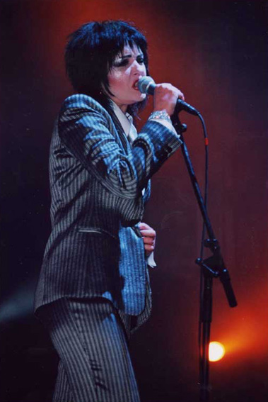 Those changes aside, the faithful just had to come out for this, the Seven-Year Itch Tour, proof that their Creatures project aside, Siouxsie and Budgie must have missed their fellow Banshee Severin a little in the seven years since they last played with him. And, as Siouxsie puts it on stage, 'If you've got an itch, scratch it!' From the moment Siouxsie emerges on stage, letting out some trademark screams that put the band's namesake to shame, it's like they've never been apart. It has to be said though - Siouxsie looks better than she's ever done. The same age as Mrs. Ritchie, taloned hands aren't in evidence in Siouxsie's case, and when she strips down to a spangly bra, no-one could deny she's in good nick. Life in her south of France chateau must agree with her. Ironically, despite the fact that they have a greatest hits album due out in autumn, the band don't give us a predictable greatest hits set - typically refusing to play the record company game. What we get is a set that largely favours early albums The Scream and Juju. Album tracks 'Jigsaw Feeling' and 'Mittageisen (Metal Postcard)' (the latter's anti-Nazi sentiments particularly apt given Le Pen's rising popularity in France - a fact that can't be lost on Siouxsie, given where she lives) kick off the unpredictable set that's a shout-out to the band's punk roots. The stage set itself is even striped to the basics, with the band a four piece again, consisting of just Siouxsie, Budgie, Severin and guitarist Knox Chandler, and with stark lighting and a simple backdrop that doesn't distract from the band's performance. Of the band's singles, only 'Arabian Knights', 'Spellbound', 'Christine', Cities In Dust' and 'Kiss Them For Me' (the latter almost unrecognisable with jagged guitar taking the place of its former Eastern influences) rearing their heads, and a housed-up 'Peek A Boo' as the final encore. In fact its arguably the lesser-known 'Voodoo Dolly' and 'Night Shift' that get the biggest reaction from the faithful crowd. As the Banshees leave the stage, its obviously to an audience who hope the next time they have an itch, they don't leave is so long to scratch it. |