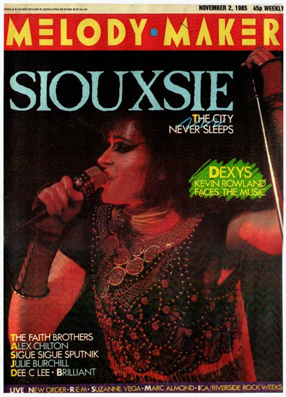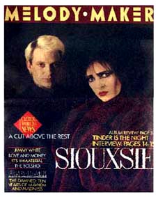 Just when you thought it was safe to go out at night again, SIOUXSIE AND THE BANSHEES return. Smarting with fury after their 'Hyaena' was sent packing, their new discipline will not permit listeners the same leeway this time round. What? Me happy? Mind your own business! Last Wednesday Greta Garbo celebrated her 80th birthday. Despite 50 years of Hollywood prying, her divinity, her mysteries remain intact. A remarkable achievement. Her person stands inviolate, or at least as undefiled as she desires. This September Siouxsie & The Banshees turned nine years old. These past few years they have not proven as resistant to the snoops and personality collectors as Garbo, in all her self-imposed solitude, has managed. The fabulous frieze the Banshees used to present has been nigglingly chipped away by souvenir hunters and well wishers - strangely, their enemies never did them any real harm - until it was flattened out, rendered one dimensionally flush, just like the shriller Banshee haters always said it was. If the Banshees' record looks poor in comparison, it should be pointed out they work within a more vicious, spiteful, vulturous and impatient popular culture, which sells an altogether baser idea of star. The Banshees always stated their intention to pursue stardom. Indeed, they rightly declared themselves stars before any recognised system acknowledged them as such. That they disdainfully cackled in the face of the media's late acceptance of them served to fortify their star myth. They intuitively knew they had it - they didn't need anybody telling them back then. But something got lost in the way of the Banshees' cold resolve. Those long term Banshee watchers amongst us looked on in horror as the group seemed to become slowly absorbed into the anecdotal chum structure of the music press supporting the pop star system, which reciprocated with gossipy features showing that even Siouxsie could be one of the lads, and, boy, could the Banshees party. In short, they were no different from the rest of us. This was the revelation we did not need to be told. The debilitating process of such amiable articles on their lofty indifference to adoration - paradoxically they were then presented by the same media as suitable candidates for worship - certainly made them less remote. The more that was shown of them, all these intimate little mask-slip glimpses we were afforded of the Banshees at work and play, suggested they were less in control than they claimed. Now, the Banshee notion of stardom was never an act of self-elevation, certainly not a matter of them presenting themselves as objects for examination. It was their way of defining and preserving the essence that marked them out from the rest of the herd, of keeping others from encroaching on their space. But, not bored with them yet, the media wouldn't let them go. The more the amiable buffoons buffeted Siouxsie's blackness, believing themselves to be doing the group the favour of rescuing them from the cold, the more they exposed the fallacy of their own undertaking. The myth of Sioux doesn't so easily fall away, though until their recent European hibernation it had become somewhat tarnished by over-familiarity. Luckily, the Banshees - namely Sioux and Steve Severin, Budgie and latest guitarist John Carruthers - have phenomenal recuperative powers. For the followers' part, they did not require any stagey friendliness from the Banshees. They certainly weren't after some icon to venerate. They were offered a greater and very real intimacy: the essence of Siouxsie & The Banshees poured into performance and records. Hippy? GO shove it! Gaze across at the face of Siouxsie Sioux opposite. Now tell me, is there anything more you need to know about her? Suffice it to say, the baubles have been cleared out with the babble, gone with the gaggle of geese establishing their pecking orders elsewhere. Their attention span didn't stretch to the Banshees' silence. After a year away, a summer spent working on a new LP in Berlin and a tour of out of the way places across the continent, the Banshees returned a renewed and thereby invigorating force. No radical departures, they have relocated their capacity to surprise, stir and even motivate. "Something you brought up in your Belgian review (from the costal resort town of De Panne), " recalls Siouxsie, as we cast ourselves adrift in the tourists of Queensway, packing back and forth between a German Konditorei and two deckchairs in Hyde Park, enjoying - Sioux, that is - the anonymity of being amongst foreigners. "You said we played a lot of new songs that sounded like the older ones. Well, they do, I suppose. There's no denying that the Banshees have a sound, whether we're using guitars or stringed instruments, no matter what we're playing it comes out sounding recognisably Banshees. We do not want to make ourselves sound different just for the sake of it." Their new songs make room to move within the narrow parameters of the Banshees style. Sunk in deckchairs, watching the sun go down over London, Siouxsie plays me their forthcoming single 'Cities In Dust', inspired by a visit to Pompeii during the Italian tour. Budgie's clatter of percussion provides a turbulent expression of the earth spewing forth it's pestilences, while guitar and bass inscribe a laced rhythm/melody with the churning fear of the inhabitants, combined with a quizzical awe at suddenly being placed at the mercy of natural forces. And Siouxsie's lyric is the free-frame of a city petrified for all eternity, it's distraught citizens final seconds, spent nobly or otherwise, here preserved for all to see. As with Siouxsie's best work it places the concrete reality of the event in opposition to the way we are invited to see it now, contrasting the view presented to the tourist - "It's really awesome, but at the same time quite sad," she elaborates, "dusty bodies, an empire buried in dust; brats have graffiti-ed the wall, while their parents have to be